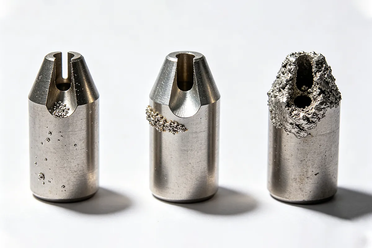 The problem compounds with each pass. A thin initial layer attracts more buildup. Once enough spatter accumulates inside the nozzle bore, the shielding gas stream gets turbulent or restricted. At that point, you’re no longer delivering consistent gas coverage to the arc zone — you’re just going through the motions.
