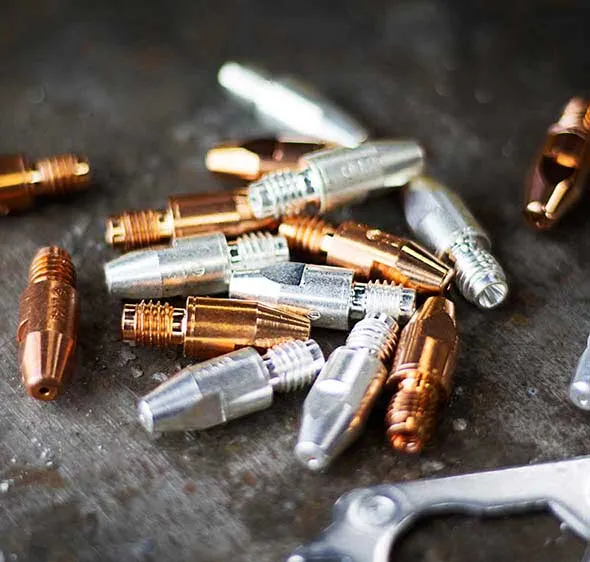 - Выберите новый наконечник, соответствующий диаметру и материалу Вашей проволоки (например, стандартный медный для стали, хромированный для устойчивости к брызгам).